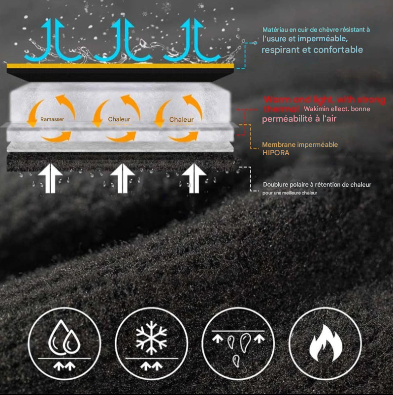 â MatĂ©riaux premium : Conçus en cuir vĂ©ritable, coton thermique et revĂȘtement PU impermĂ©able â pour une excellente isolation et une rĂ©sistance Ă lâusure.